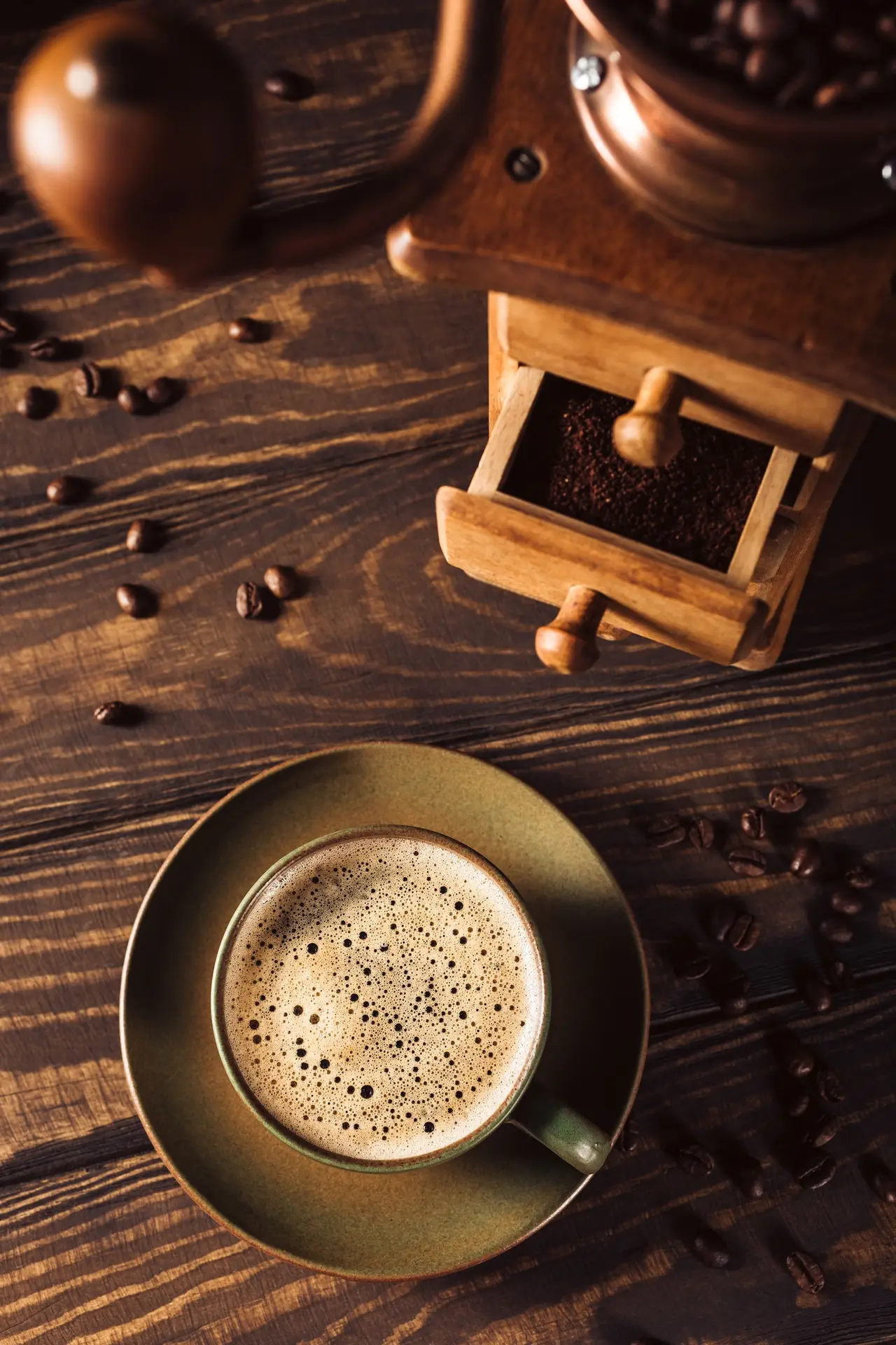 Siparişe en yakın anda öğütülen kahve, lezzetin garantisidir. Her yudumda tazelik hissi verir, bu yüzden asla hazır öğütülmüş kahve kullanmayız.